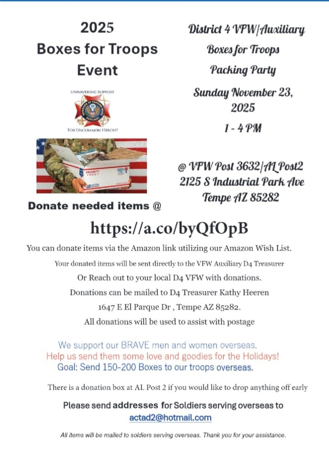 John Jackson Auxiliary 3632 – AL Post 2, 2125 S. Industrial Park Ave, Tempe 480-941-5258