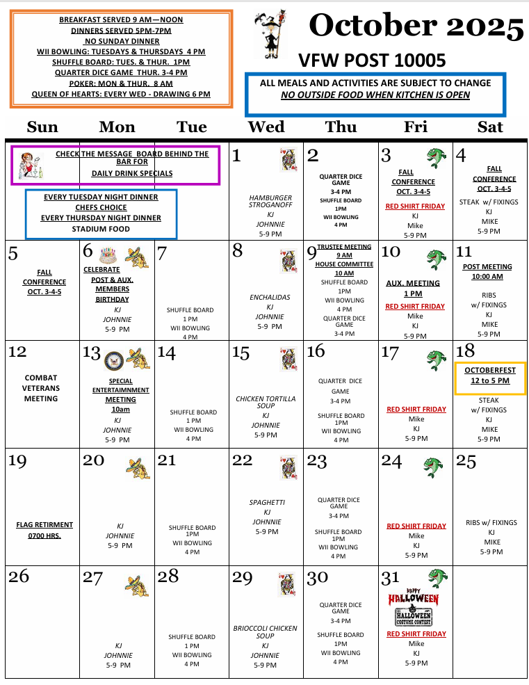 Brig. Gen. Clifford H. Shuey Auxiliary 6306 – 12585 Old Oatman Rd, Topock 928-768-3033